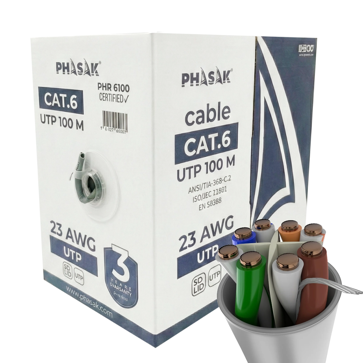 Bobina de Cable de Red 100 m UTP Sólido PHASAK AWG23 Cat.6 CCA – PHR 6100
