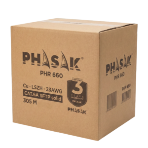 El PHR 670 es un cable FTP (apantallado por lámina) de categoría 6 con conductor AWG23 CCA sólido y 305 metros de longitud. Diseñado para despliegues en exteriores, aporta estabilidad eléctrica y reducción de interferencias en redes corporativas y sistemas de seguridad.