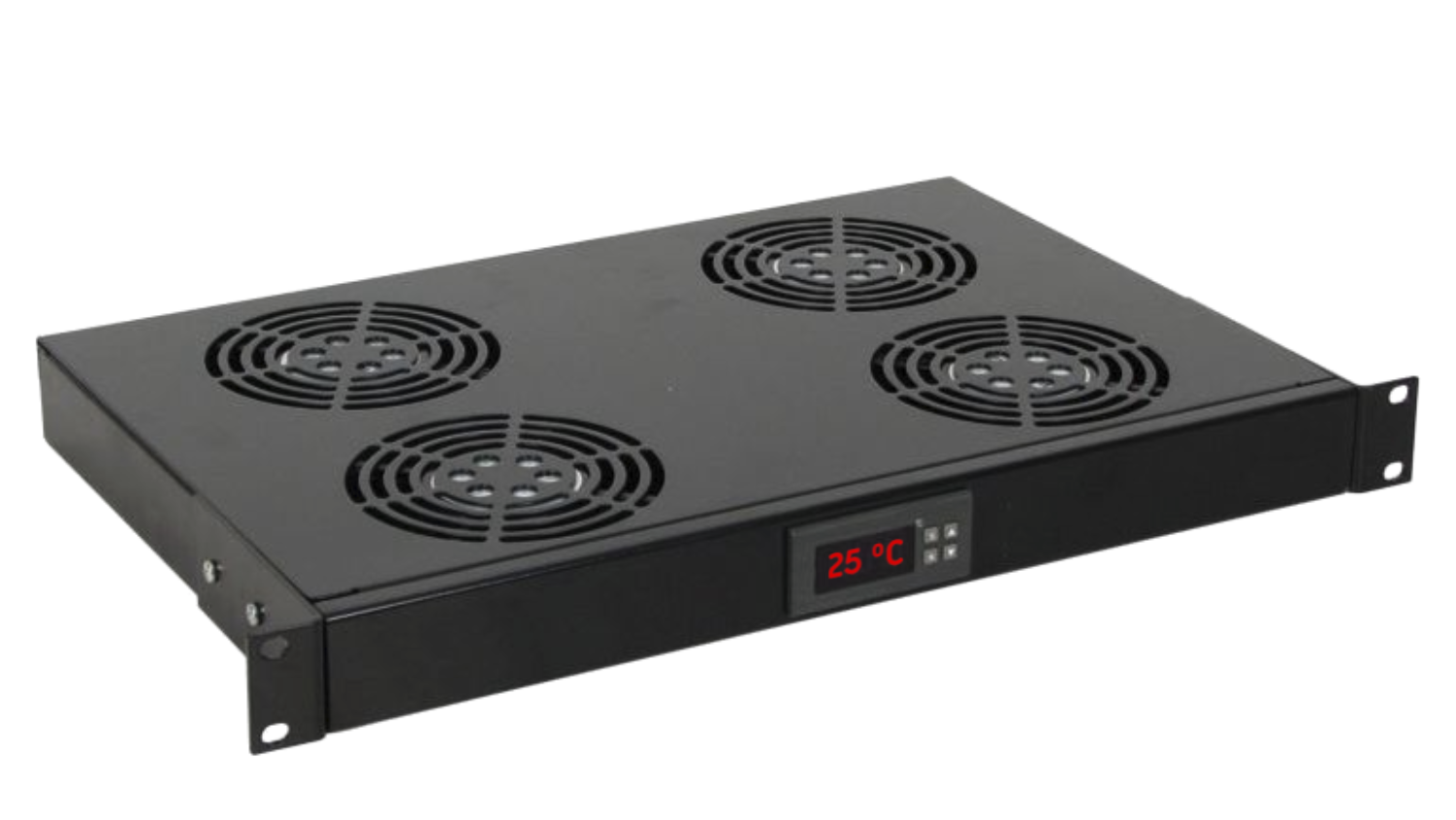 PHO 5654 – Módulo de ventilación 1U con termostato (4×120 mm) diseñado para optimizar el flujo de aire en armarios PHASAK-PRO y PHASAK-PRO SERVER. Incorpora 4 ventiladores de 120 mm y un termostato que gestiona el encendido/apagado automático según la temperatura, ayudando a mantener una refrigeración estable y a reducir el ruido y el consumo.