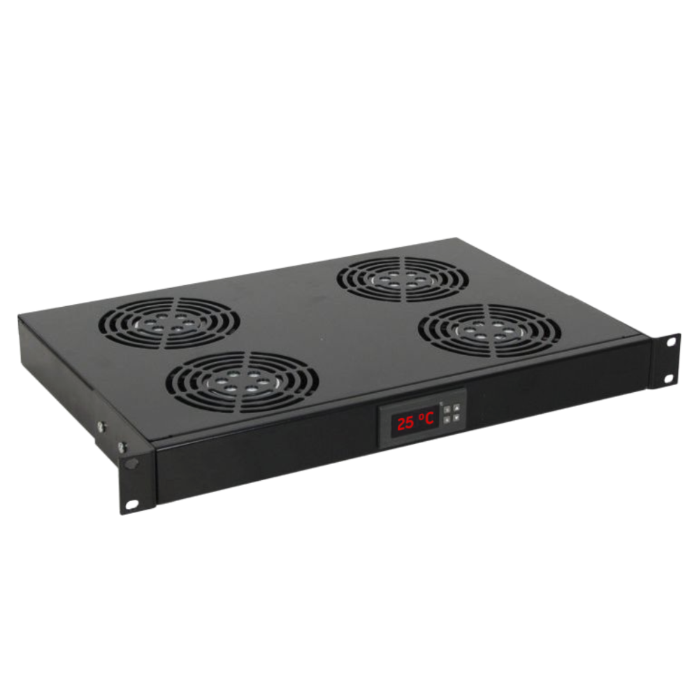 PHO 5654 – Módulo de ventilación 1U con termostato (4×120 mm) diseñado para optimizar el flujo de aire en armarios PHASAK-PRO y PHASAK-PRO SERVER. Incorpora 4 ventiladores de 120 mm y un termostato que gestiona el encendido/apagado automático según la temperatura, ayudando a mantener una refrigeración estable y a reducir el ruido y el consumo.