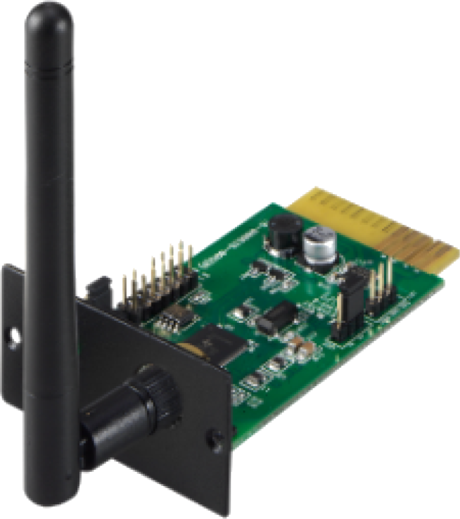 Ideal para habilitar conectividad inalámbrica del SAI sin cableado adicional y centralizar la monitorización en red.