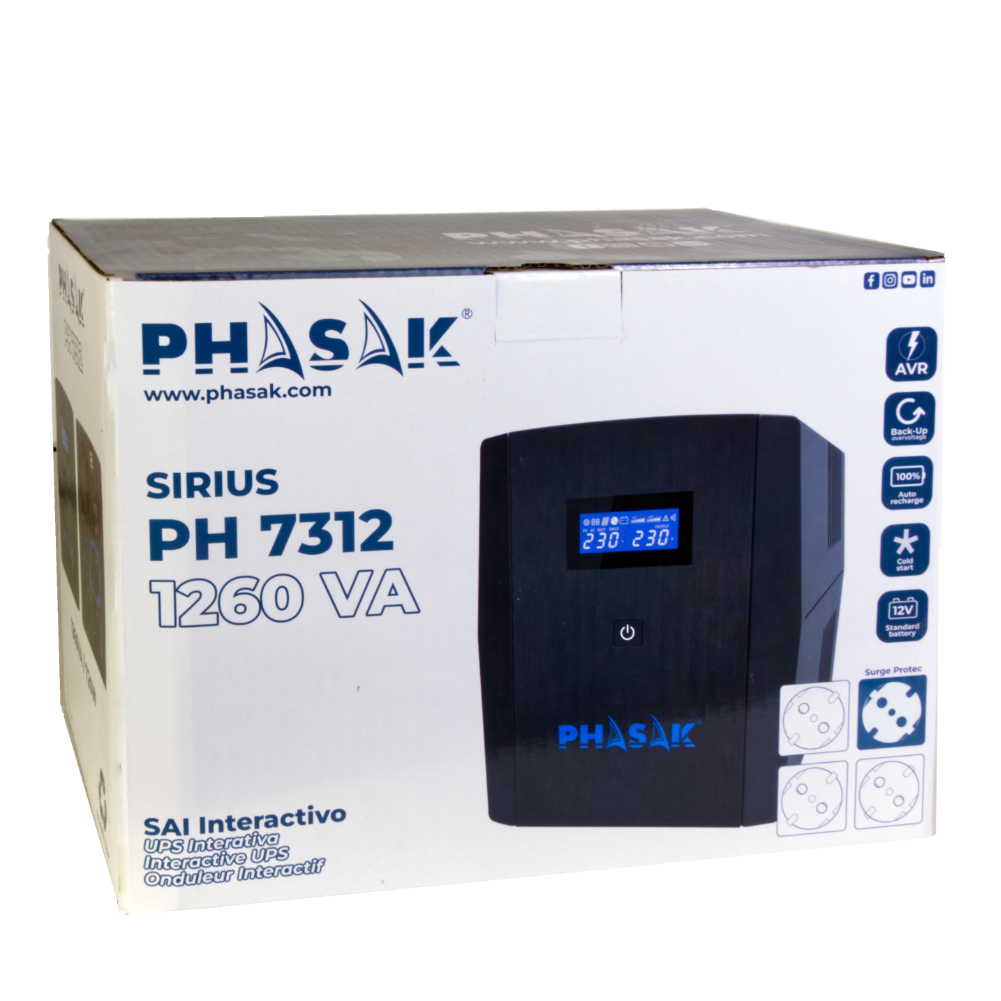 Con la capacidad de reinicio automático después de un corte de energía, el SAI Phasak Sirius 1260 VA minimiza el tiempo de inactividad, asegurando que los dispositivos críticos permanezcan operativos. La función de recarga automática mantiene las baterías en condiciones óptimas de funcionamiento, extendiendo su vida útil y garantizando disponibilidad cuando más se necesita.