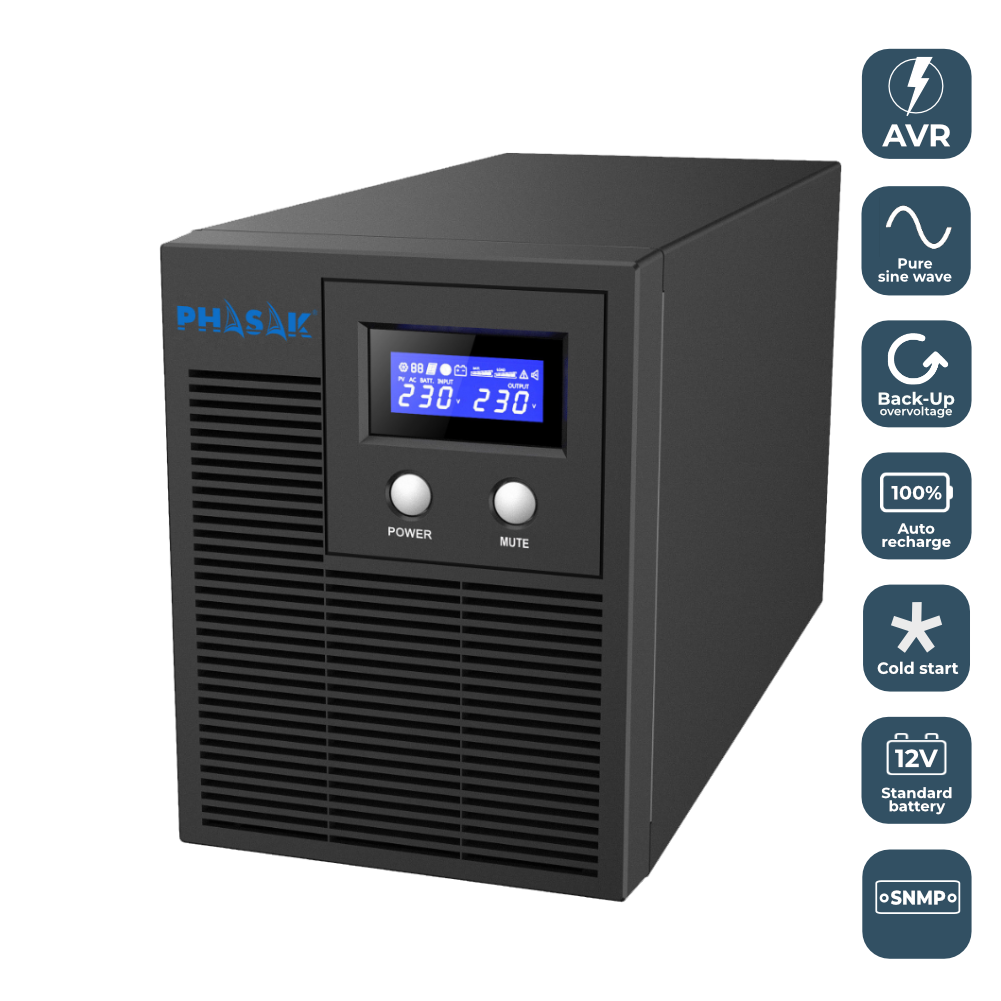 El PH 7621 es un SAI interactivo con regulación automática de voltaje (AVR) que estabiliza la tensión sin recurrir continuamente a la batería, ayudando a prolongar su vida útil. Ante un corte, suministra energía de forma inmediata para evitar reinicios y pérdida de datos en switches, routers, NAS, NVR/DVR y estaciones de trabajo.