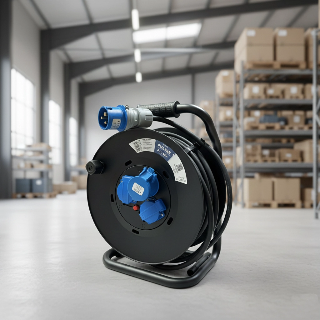 Regleta enrollable PHASAK 4× Schuko con protección – 10 m (BN 3478)