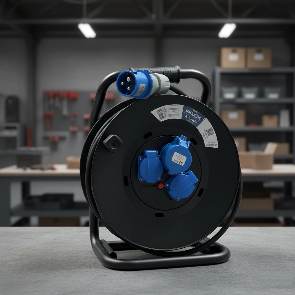 PHASAK BN 3411 es una regleta de alimentación enrollable con 4 tomas Schuko y 10 m de cable. Incluye protección contra sobretensión y asa para transporte, permitiendo un uso cómodo en talleres, obras y hogar/oficina.