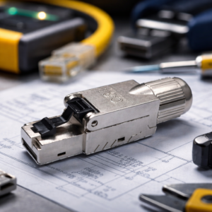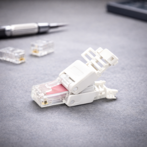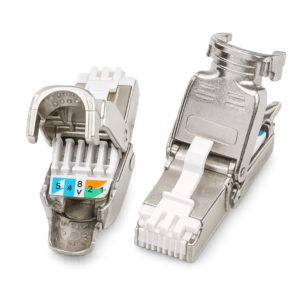 Conector RJ45 Cat.8 STP Toolless blindado para redes de máxima velocidad.