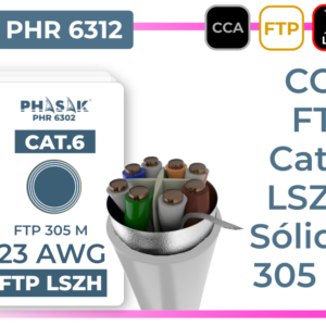 Cable de red UTP Cat.6 con conductor sólido CCA (AWG23), pensado para tramos permanentes de cableado estructurado en interiores. Presentación en caja dispensadora. Referencia PHR 6302.