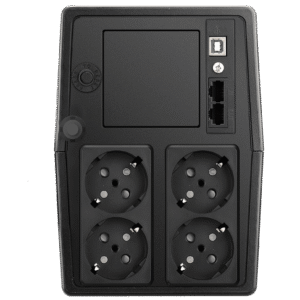 SAI interactivo (AVR) de 600 VA para proteger PCs, NAS y electrónica de red frente a picos, microcortes y caídas de tensión. Continuidad fiable para hogar y oficina.