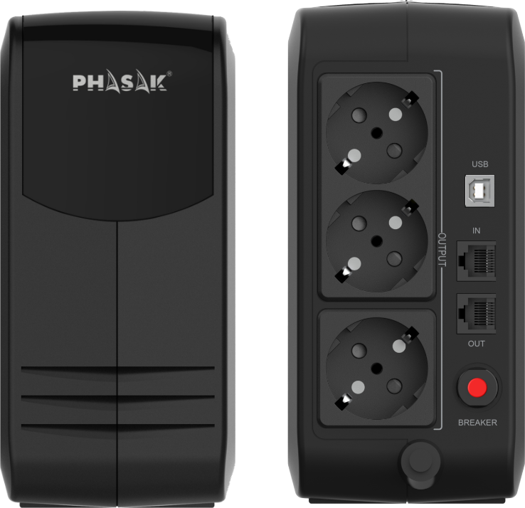 Integra 3 tomadas Schuko, proteção de rede RJ45 e porta USB HID, transformando-se numa solução de backup completa e segura. É totalmente compatível com cargas APFC (consolas de jogos ou PCs gaming), evitando reinícios e perdas de dados em microcortes ou flutuações de tensão.